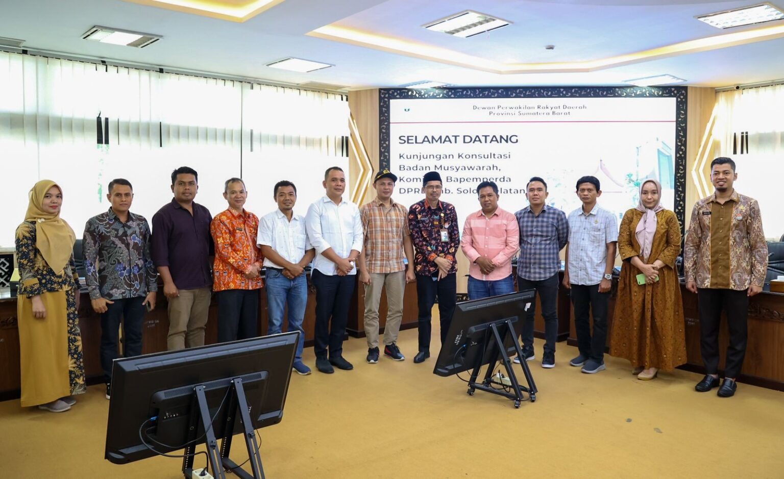 PADANG – DPRD Provinsi Sumatera Barat (Sumbar) menerima kunjungan Bapemperda DPRD Kabupaten Solok Selatan, Kamis (2/11/2023) di ruang khusus 1. Kunjungan tersebut dalam rangka Konsultasi Penyusunan Program Pembentukan Peraturan Daerah (Perda) Tahun 2024.