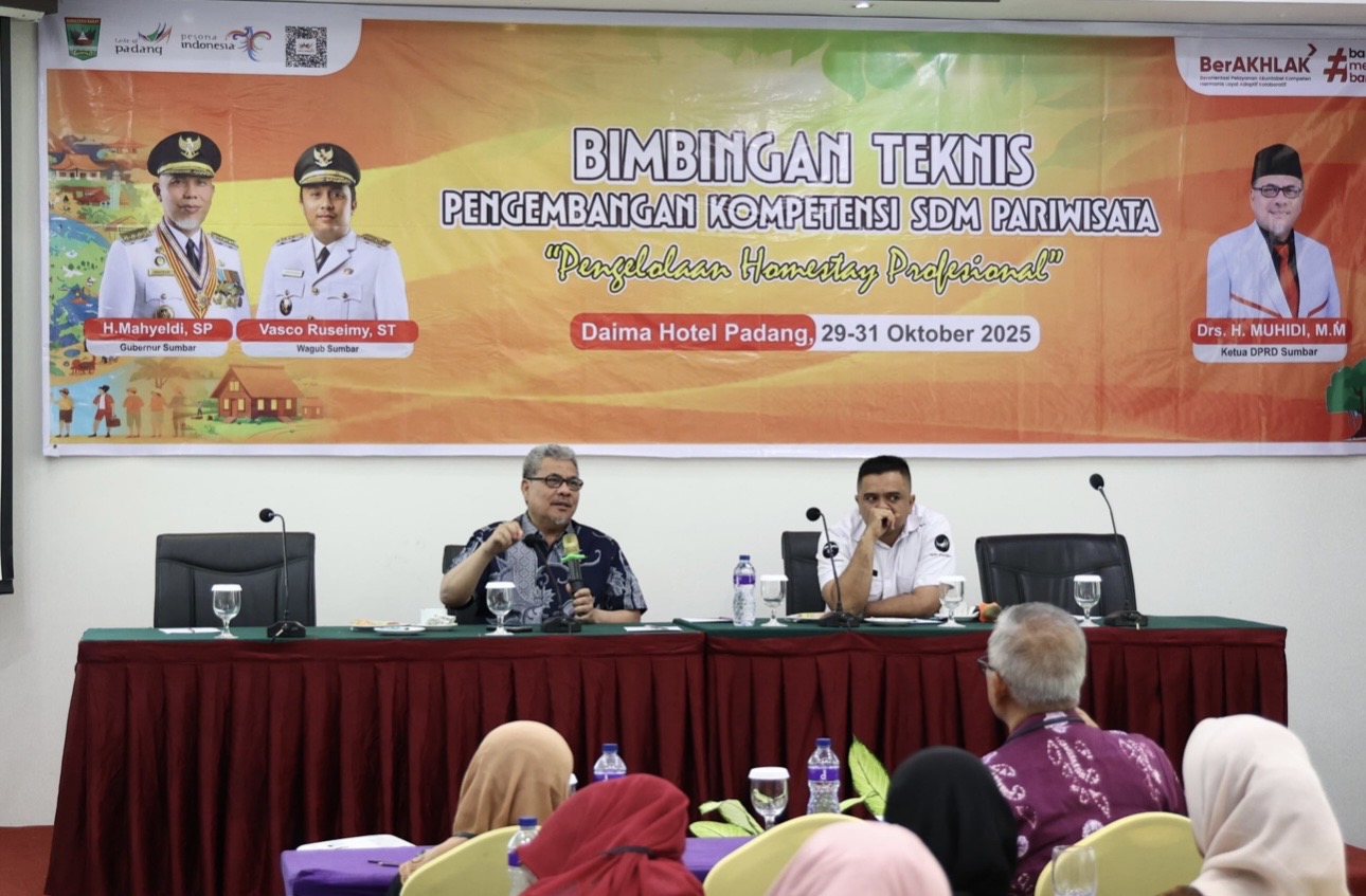 Muhidi menyebutkan, pengelolaan homestay yang profesional akan menjadi salah satu pilar penting dalam mendukung pertumbuhan pariwisata berbasis masyarakat di Sumatera Barat. “Rencana induk pariwisata harus menjadi tolak ukur arah pengembangan sektor ini. Karena itu, penguatan SDM dan pembagian tupoksi antar kabupaten/kota perlu dipastikan berjalan dengan jelas dan terukur,” ujar Muhidi saat membuka kegiatan bimtek tersebut, Rabu sore (29/10).