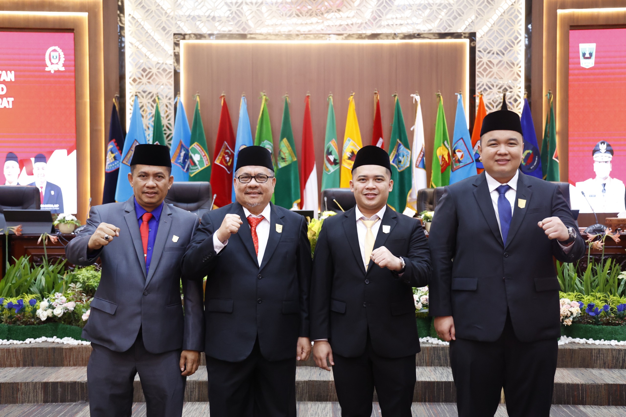 “Alhamdulillahirrabilalamin, prosesi pengucapan sumpah / janji Pimpinan DPRD Provinsi Sumatera Barat Masa Jabatan Tahun 2024-2028, telah dapat kita laksanakan dengan lancar dan sukses. Mudah-mudahan ini merupakan awal yang baik untuk kesuksesan dalam pelaksanaan tugas-tugas DPRD sebagai unsur penyelenggara pemerintahan daerah. Selanjutnya, kami akan memimpin dan mengkoordinasikan pelaksanaan tugas, fungsi dan kewenangan DPRD sebagai unsur penyelenggara pemerintahan daerah,” ungkap Muhidi, dari Fraksi PKS, dengan Wakil Ketua Evi Yandri Rajo Budiman dari Gerindra, Iqra Chisa Putra dari Golkar, dan Nanda Satria dari Nasdem.
