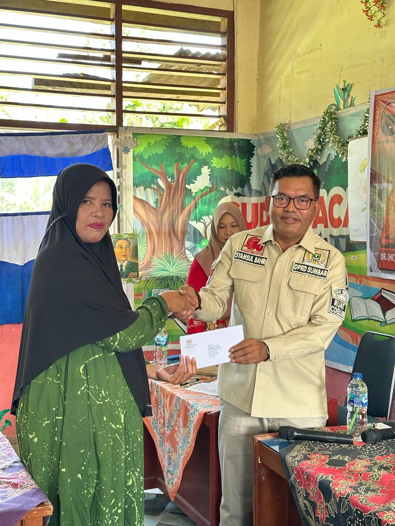 Pada penyerahan juga dihadiri kabid GTK Dinas Pendidikan Pasaman Barat, Kepala sekolah Syahrin Siregar, para guru dan wali murid penerima bantuan pendidikan tersebut.