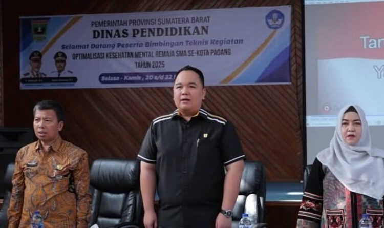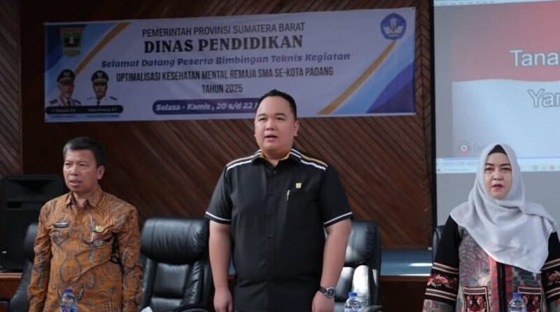 Wakil Ketua DPRD Provinsi Sumatra Barat, Nanda Satria hadir sebagai narasumber dalam kegiatan Bimbingan Teknis (Bimtek) hari ketiga bertema Optimalisasi Kesehatan Mental Remaja, yang digelar untuk siswa-siswi SMA se-Kota Padang, Kamis (22/5/2025).