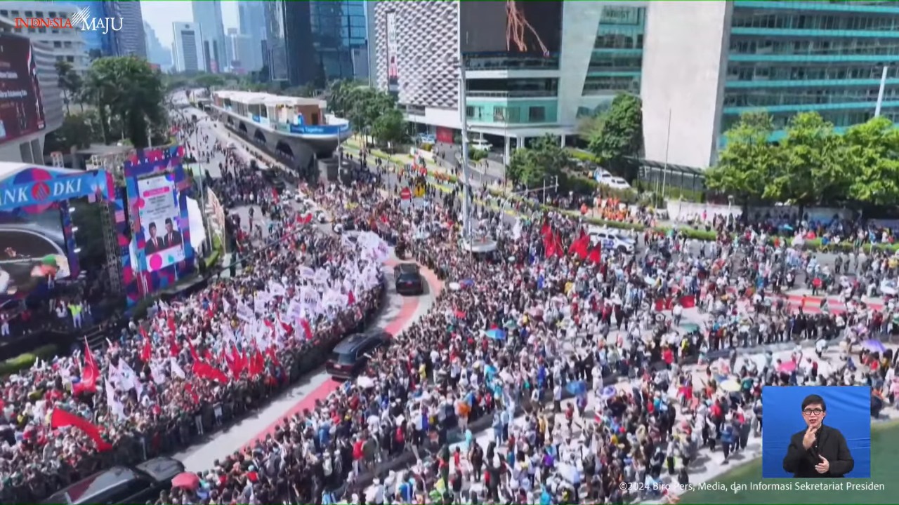 Jakarta – Pelantikan Prabowo Subianto sebagai Presiden ke-8 Republik Indonesia pada 20 Oktober 2024 disambut dengan antusiasme besar dari berbagai lapisan masyarakat. Acara ini tidak hanya menjadi momentum penting bagi transisi kepemimpinan nasional, tetapi juga diwarnai dengan gelaran Pesta Rakyat di sepanjang Jl. Jenderal Sudirman hingga Monumen Nasional (Monas), Jakarta Pusat. Acara tersebut diadakan sebagai bentuk dukungan dan kegembiraan rakyat atas transisi kepemimpinan ini. Semangat persatuan dan optimisme terhadap pemerintahan baru terlihat jelas dari dukungan masyarakat yang turut menyukseskan acara.