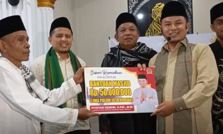 Sijunjung, Panorama Indonesia – Anggota Komisi V DPRD Sumatera Barat, Syofyan Hendri, melaksanakan kegiatan Safari Ramadhan di Masjid Al-Ikhsan, Kunpar, Kecamatan Kamang Baru, Kabupaten Sijunjung, pada Jumat (21/3/2025).