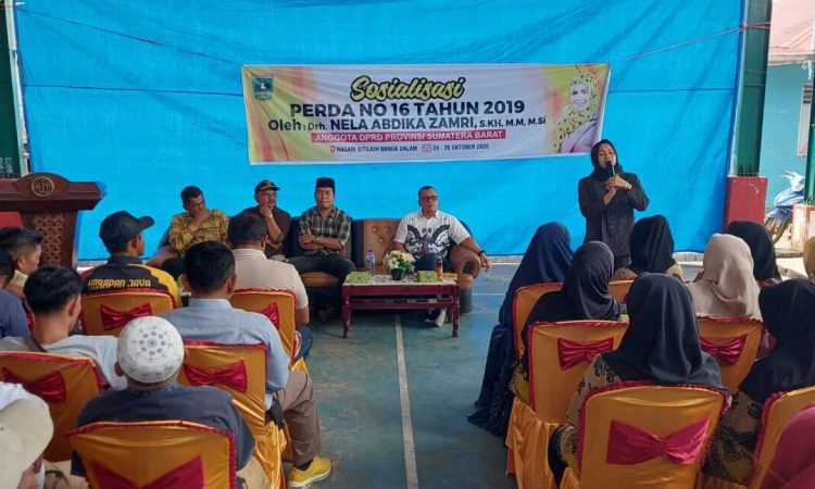 Anggota Dewan Perwakilan Rakyat Daerah (DPRD) Provinsi Sumatera Barat (Sumbar) Komisi III drh. Nela Abdika Zamri, menggelar kegiatan reses sekaligus sosialisasi Peraturan Daerah (Perda) Provinsi Sumatera Barat Nomor 16 Tahun 2019 tentang Pemberdayaan dan Perlindungan Koperasi dan Usaha Kecil. Acara itu berlangsung di Nagari Situjuah Batua, Kecamatan Situjuah Limo Nagari, Kabupaten Limapuluh Kota, Minggu (26/10), dihadiri kurang lebih 200 orang konstituen dari dua nagari, yaitu Situjuah Batua dan Situjuah Banda Dalam.