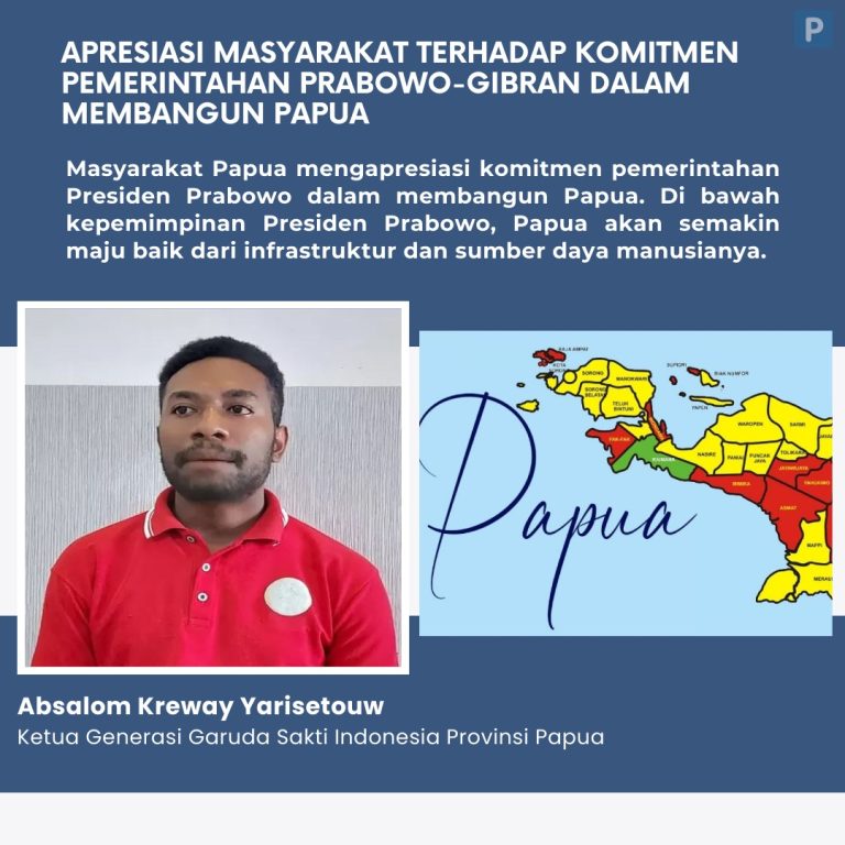 Tokoh Pemuda Papua atau Ketua Generasi Garuda Sakti Indonesia Provinsi Papua, Absalom Kreway Yarisetouw mengatakan pihaknya sangat mengapresiasi komitmen Presiden Prabowo dalam membangun Papua.
