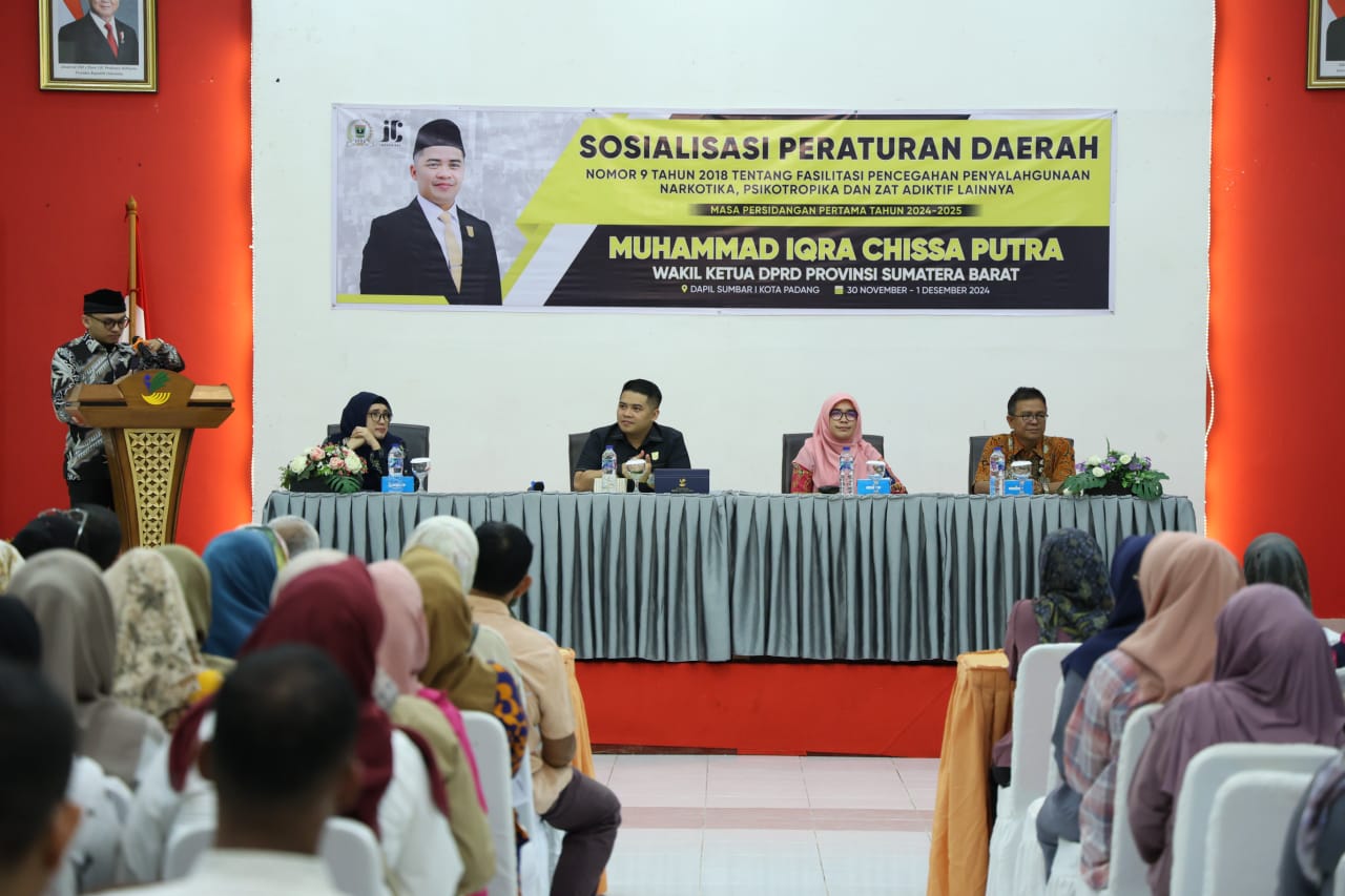 Hal tersebut diungkapkan Wakil Ketua DPRD Sumatera Barat (Sumbar) Iqra Chissa, saat mensosialisasikan Perda Nomor 9 Tahun 2018 tentang Fasilitasi Pencegahan Penyalahgunaan Narkotika, Psikotropika, dan Zat Adiktif Lainnya, di BBPPKS Kemensos Regional Padang, Kecamatan Pauh, Kota Padang, Minggu (1/12).